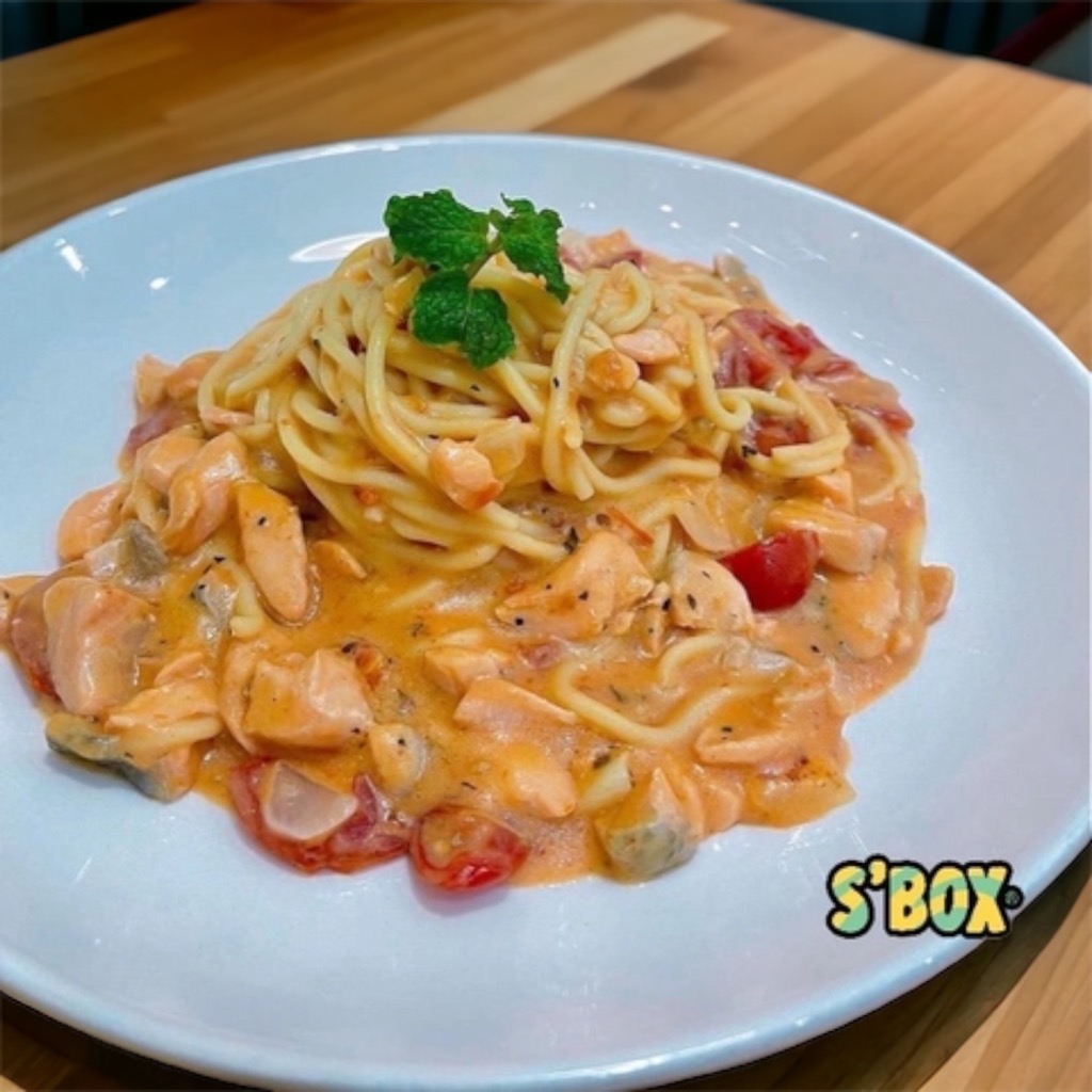 Món mới siêu siêu ngon của Sbox, sốt cá hồi tươi thơm ngậy quyện với lá húng, cà chua bi.